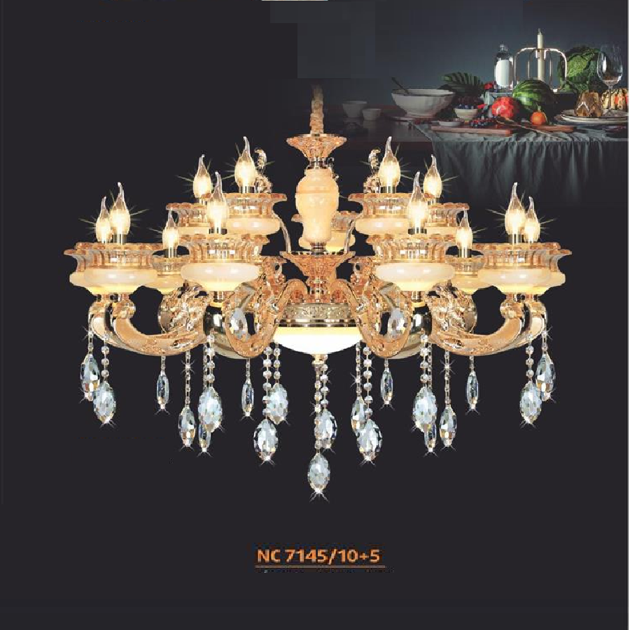 - Sản phẩm: NC 7145/10+5: Đèn chùm nến 15 tay - KT: Ø1000mm x H650mm + 500mm - Đèn nến chân E14 x 15 bóng + Đèn LED