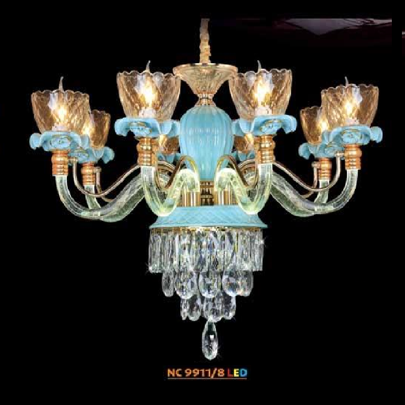 - Sản phẩm: NV - NC 9911/8 LED: Đèn chùm nến 6 tay - KT: Ø800mm x H650mm + 500mm - Đèn nến chân E14 x 8 bóng + Đèn LED