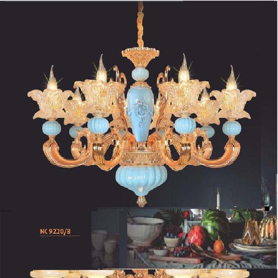 • Sản phẩm: NC 9920/8: Đèn chùm nến 8 tay - KT: Ø900mm x H450mm + 500mm - Đèn nến chân E14 x 8 bóng