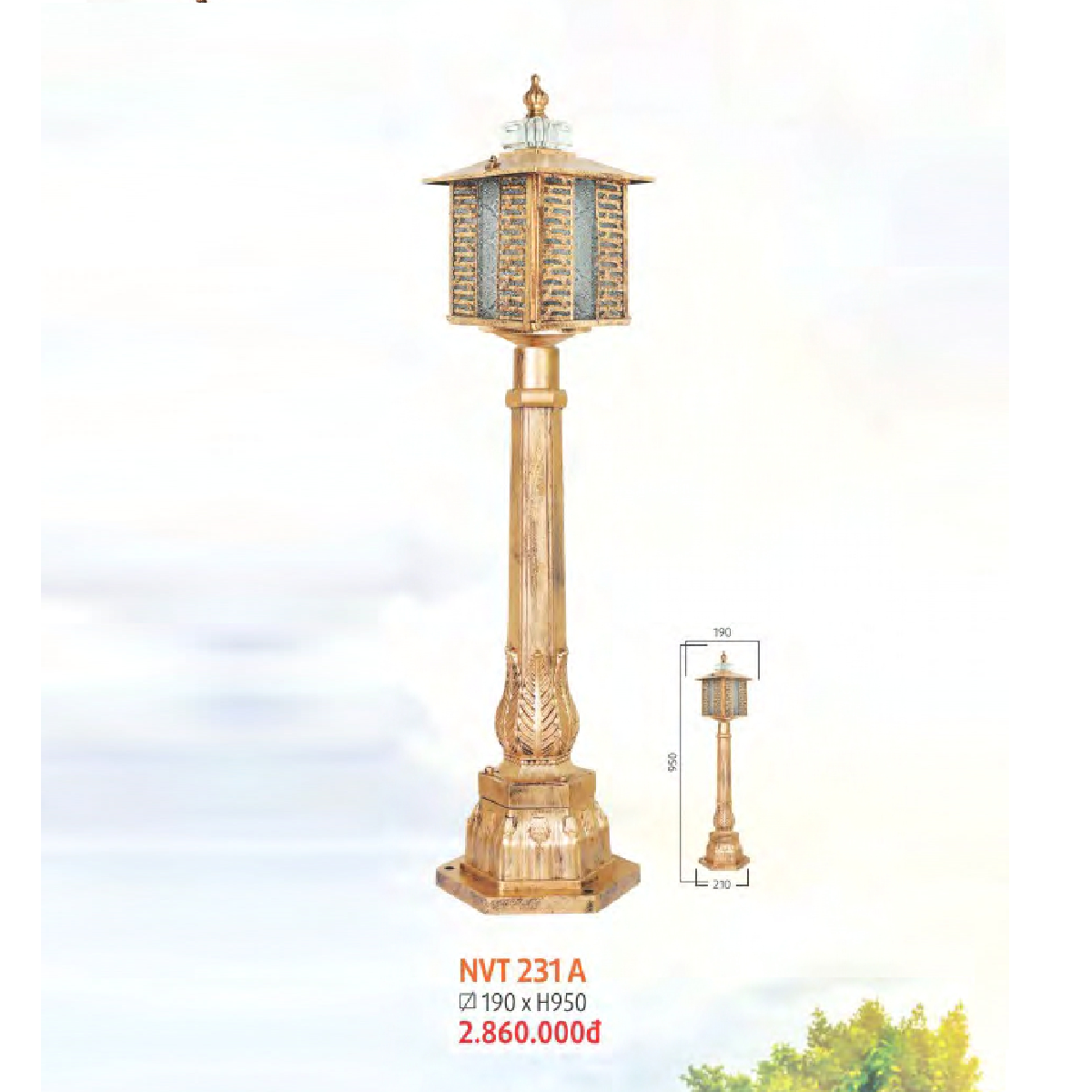 - Sản phẩm: NVT 231A: Đèn trụ sân vườn hợp kim