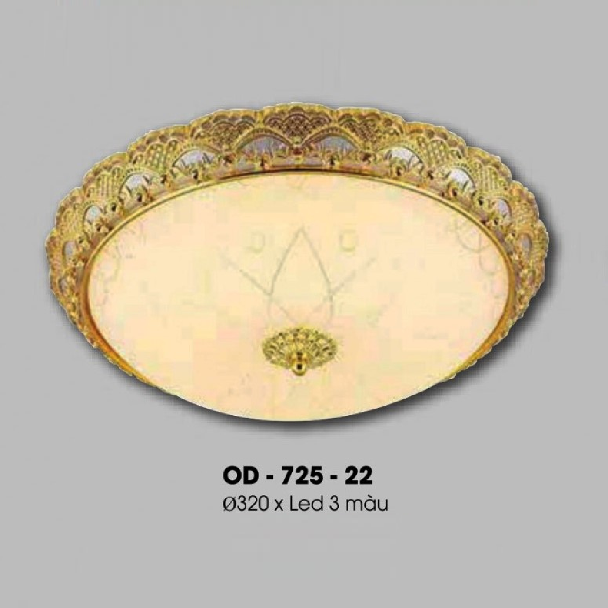 - Sản phẩm: OD - 725-22: Đèn ốp trần xi mạ đồng - KT: Ø320mm - Đèn LED đổi 3 màu