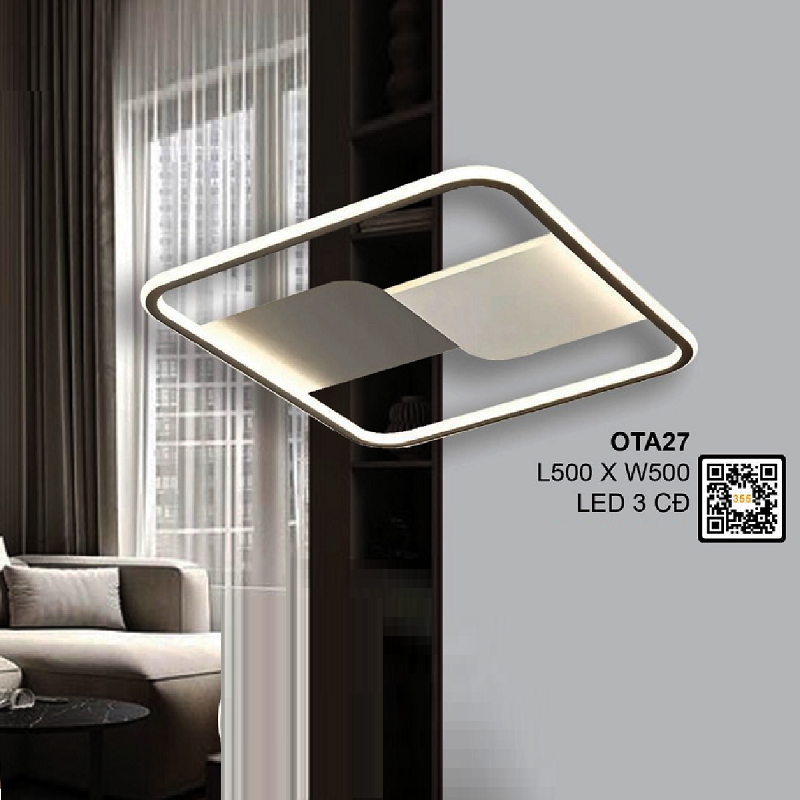 5. OTA27: Đèn áp trần vuông LED Mica - KT: L500mm x W500mm - Đèn LED đổi 3 màu