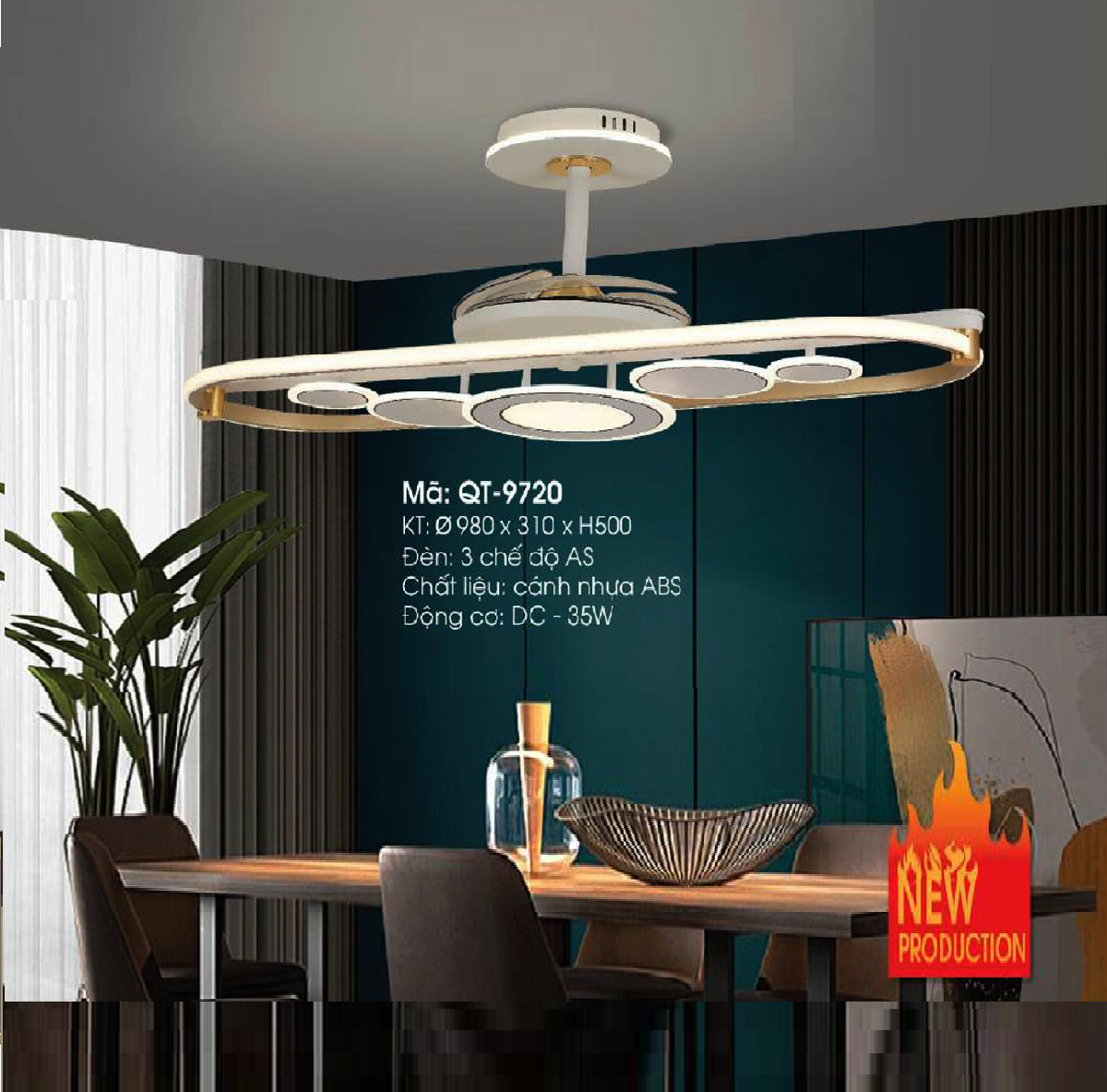 5. QT-9720: Quạt trần đèn LED - KT: Ø980mm x W310mm x H500mm - Đèn LED 3 chế độ ánh sáng