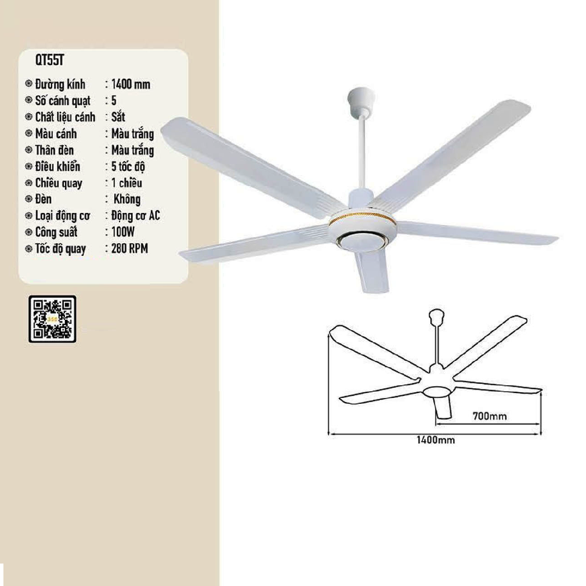 - Sản phẩm: QT55T: Quạt trần 5 cánh sắt màu trắng