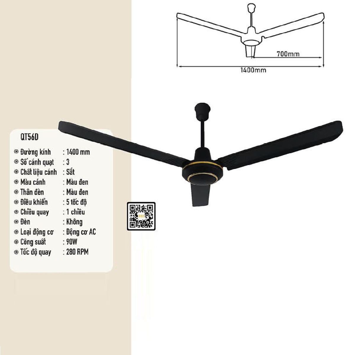 - Sản phẩm: QT56D: Quạt trần 3 cánh sắt màu đen