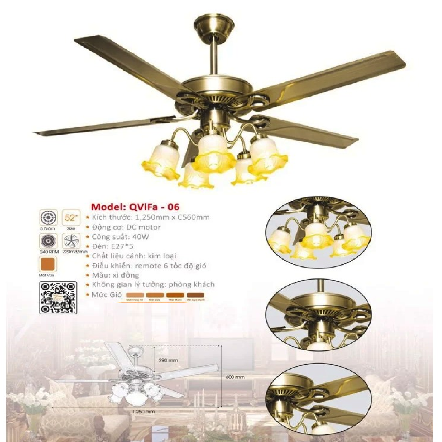• Sản phẩm: QViFa - 06: Quạt trần đèn 5 cánh kim loại