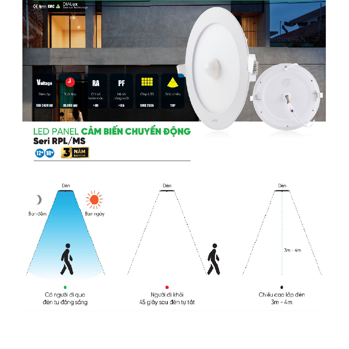RPL - 12T/MS: Đèn LED âm trần cảm biến chuyển động 12W ánh sáng trắng