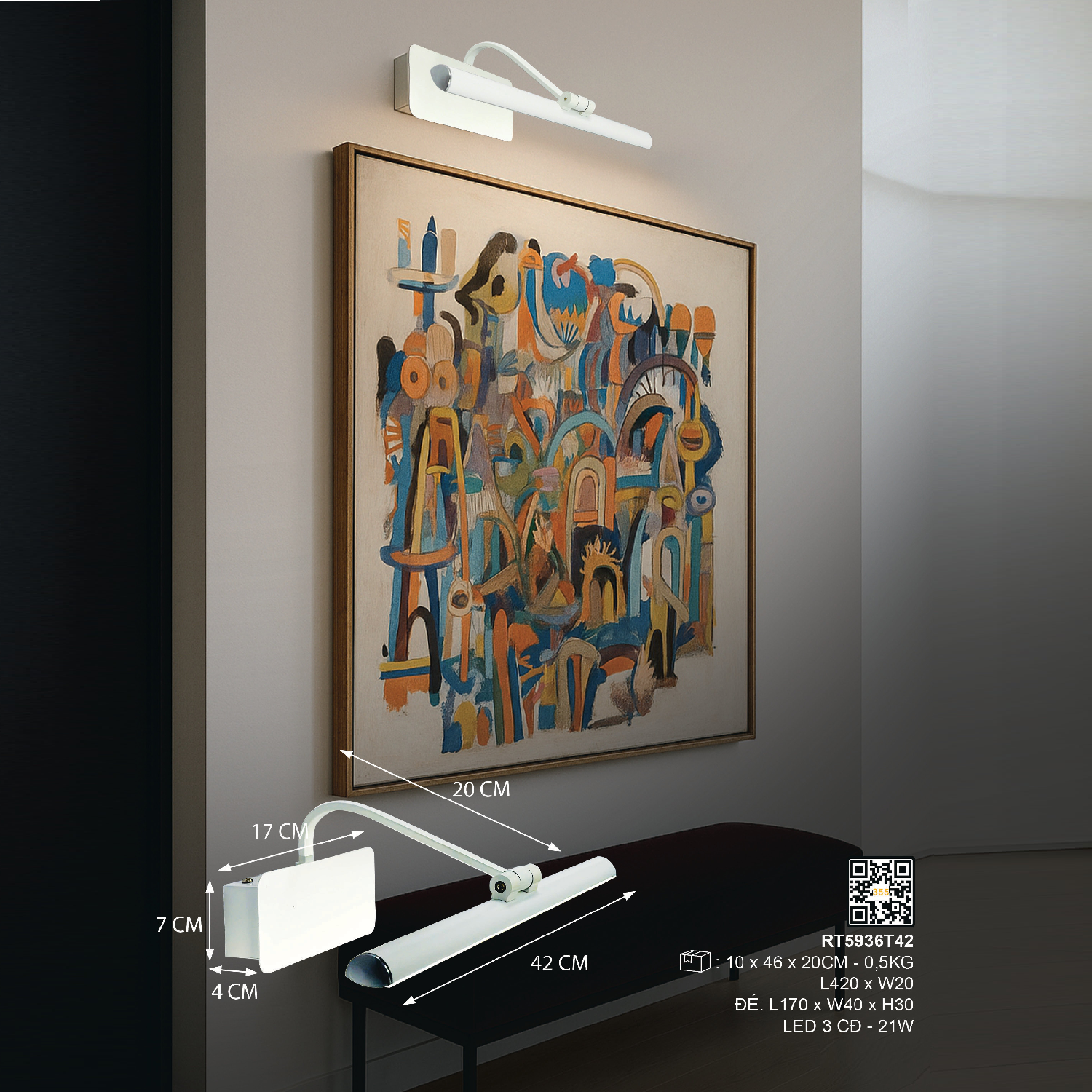 5. RT5936T42: Đèn rọi tranh/gương sơn trắng - KT: W200mm x L420mm - Đèn LED 21W ánh sáng đổi 3 màu