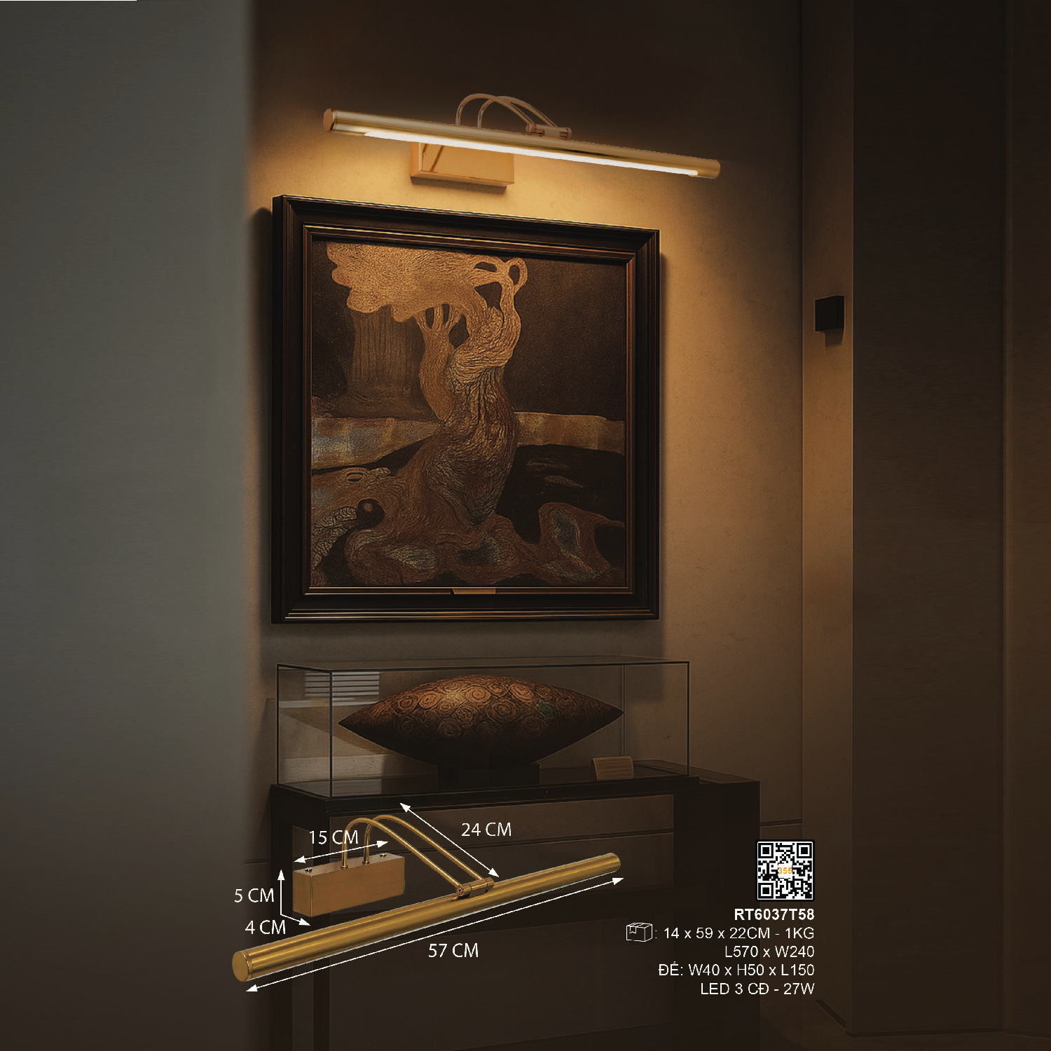 RT6038T58: Đèn rọi tranh/gương- KT: W200mm x L610mm - Đèn LED 26W ánh sáng đổi 3 màu