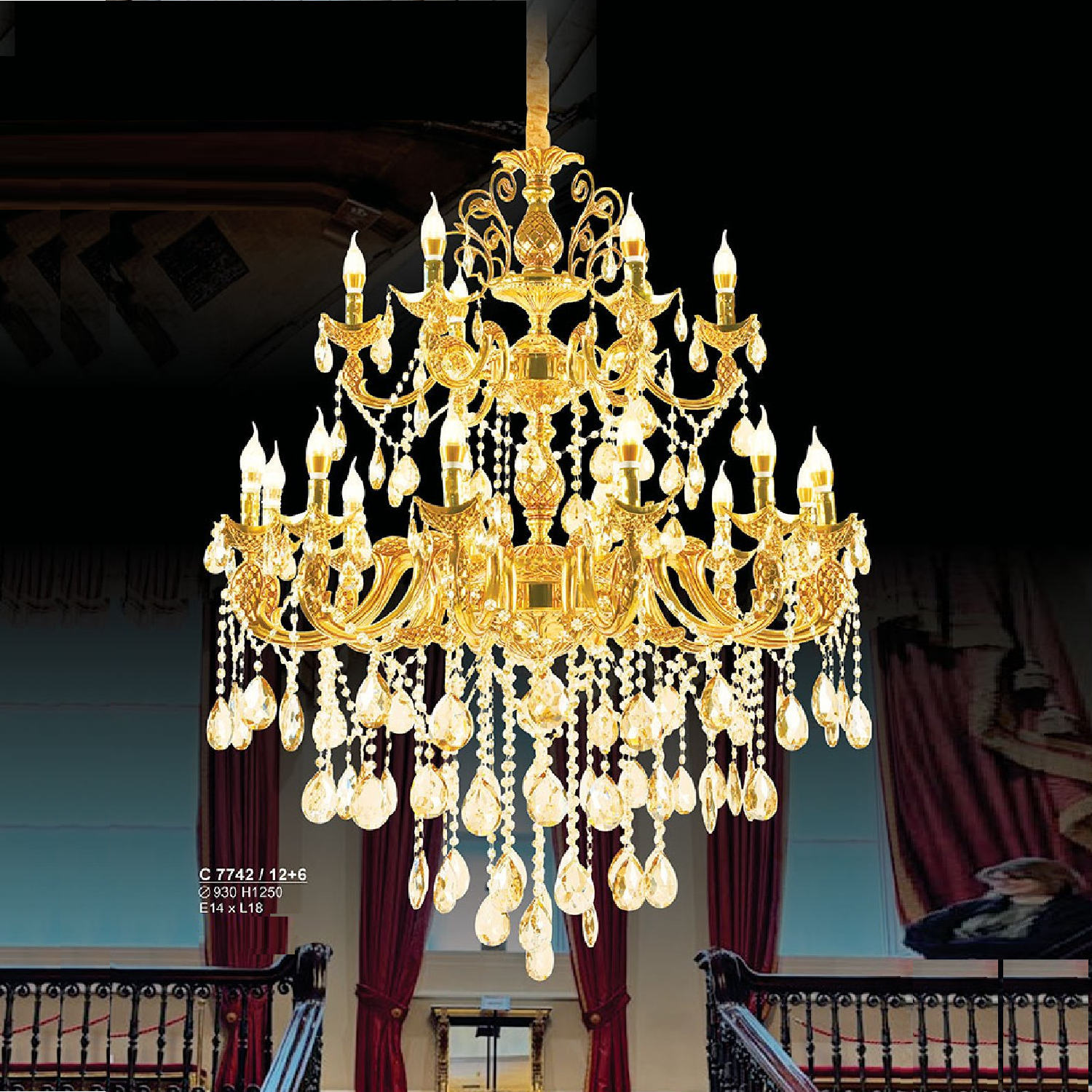 S - C 7742/12+6: Đèn chùm nến 18 tay - KT: Ø930mm x H1250mm - Bóng đèn nến E14 x 18 bóng