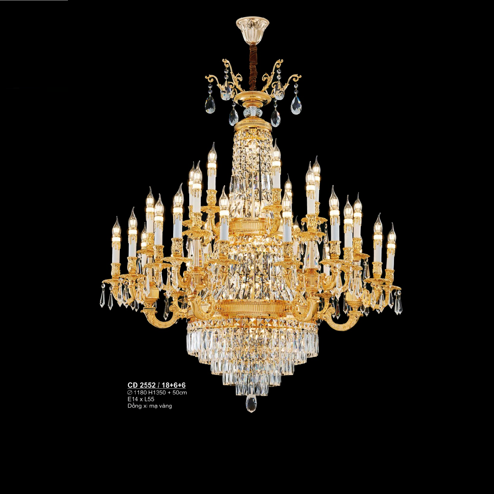 - Sản phẩm: S - CĐ 2552/18+6+6: Đèn chùm đồng Phale nến 30 tay - KT: Ø1180mm x H1350mm + 500mm - Bóng đèn E14 x 55 bóng