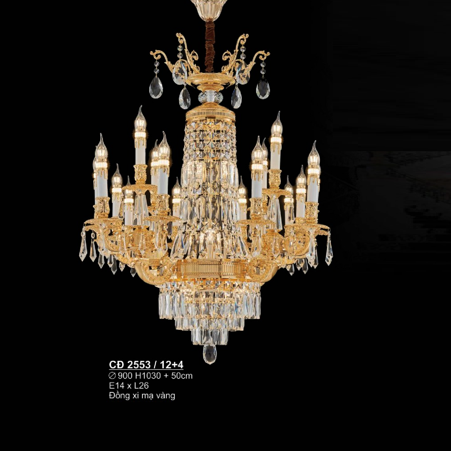 5. S - CĐ 2553/12+4: Đèn chùm đồng Phale nến 16 tay - KT: Ø900mm x H1030mm + 500mm - Bóng đèn E14 x 26 bóng