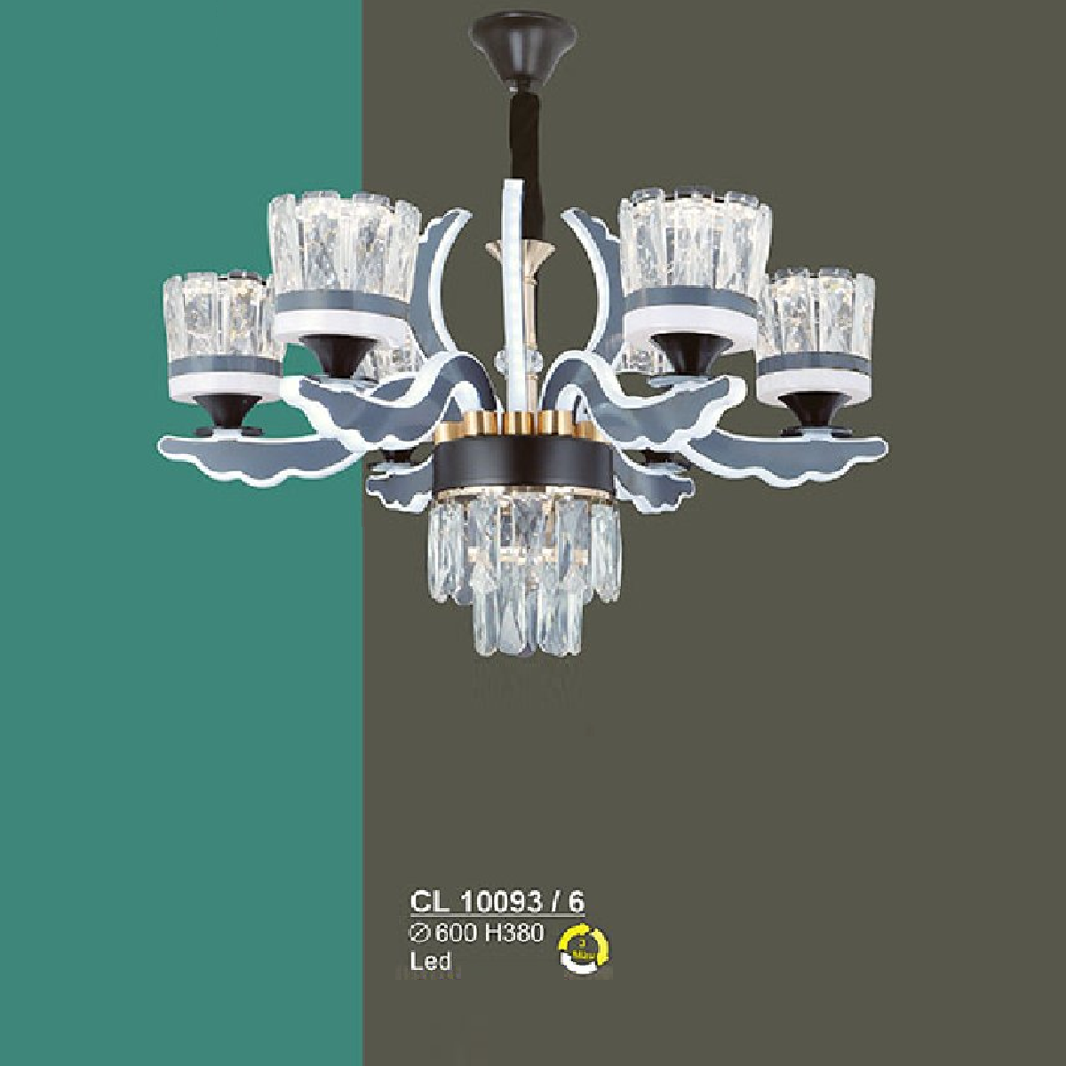 5. S - CL 10093/6: Đèn chùm LED 6 tay - KT: Ø600mm x H380mm - Đèn LED ánh sáng đổi 3 màu