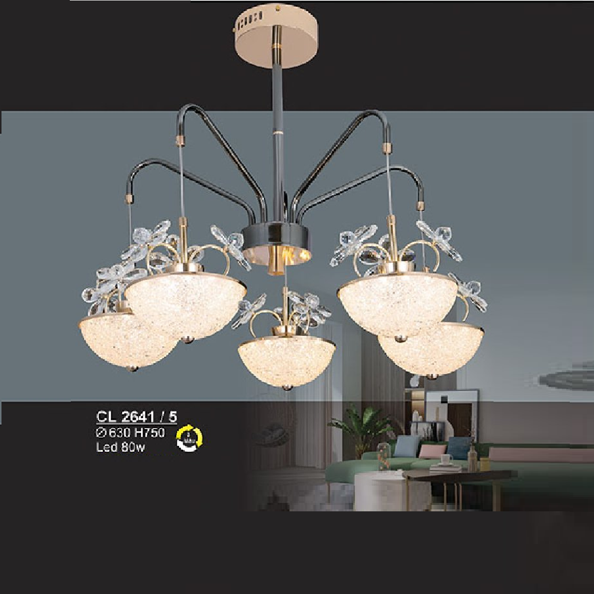 • Sản phẩm: S - CL 2641/5: Đèn chùm LED 5 tay - KT: Ø630mm x H750mm - Đèn LED 82W ánh sáng đổi 3 màu