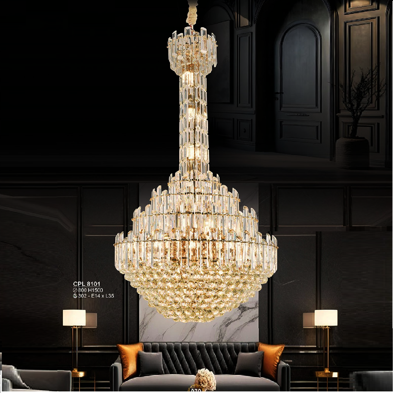S - CPL 8101: Đèn chùm thả Phale 302 hạt Phale - KT: Ø800mm x H1500mm - Bóng đèn E14 x 35 bóng