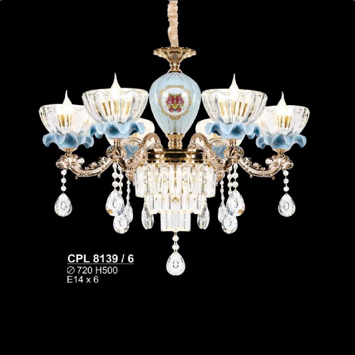 S - CPL 8139/6: Đèn chùm nến 6 tay chao thủy tinh - KT: Ø720mm x H500mm - Bóng đèn E14 x 6 bóng