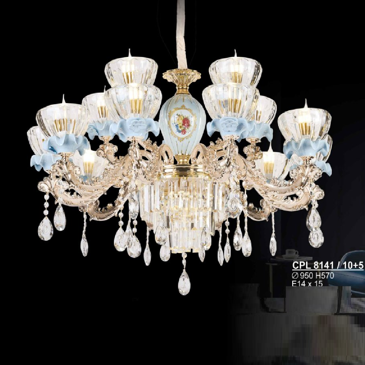 5. S - CPL 8141/10+5: Đèn chùm nến 15 tay chao thủy tinh - KT: Ø950mm x H570mm - Bóng đèn E14 x 15 bóng