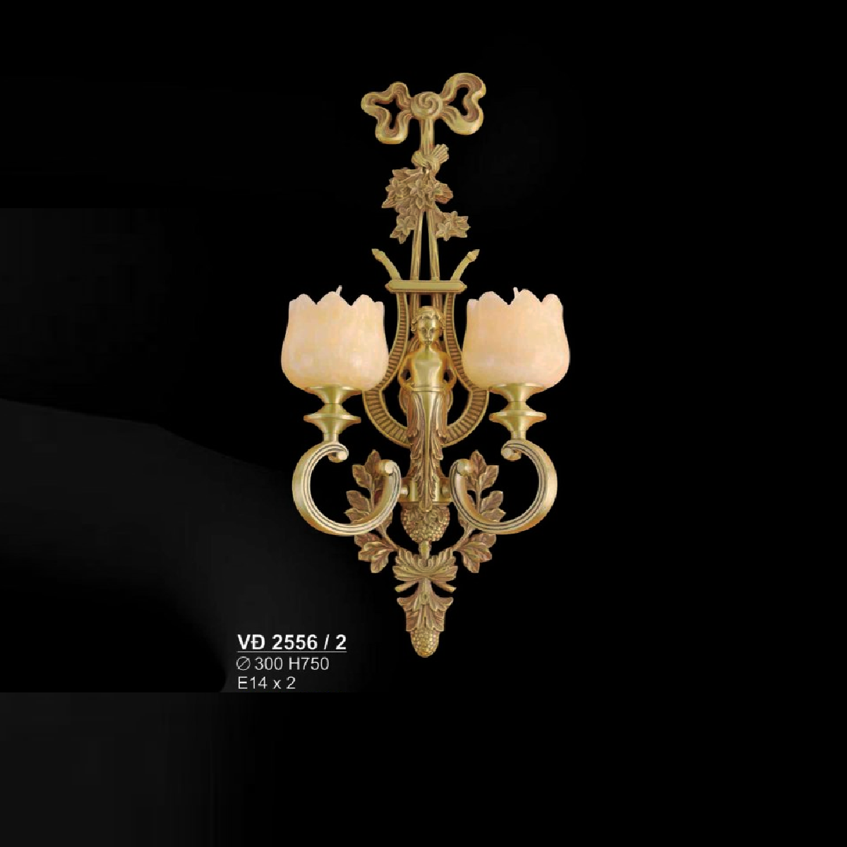 5. S - VĐ 2555/2: Đèn gắn tường đồng chao đá 2 tay - KT: Ø300mm x H750mm - Bóng đèn E14 x 2 bóng