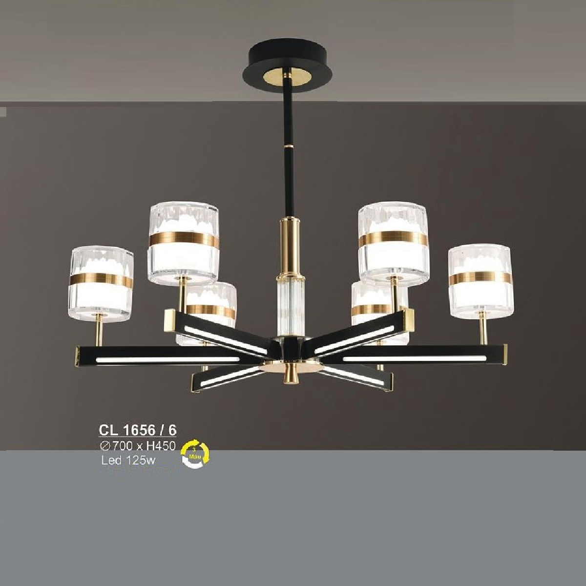 • Sản phẩm: S - CL 1656/6: Đèn chùm LED 6 Tay - KT: Ø700mm x H450mm - Đèn LED 125W ánh sáng đổi 3 màu