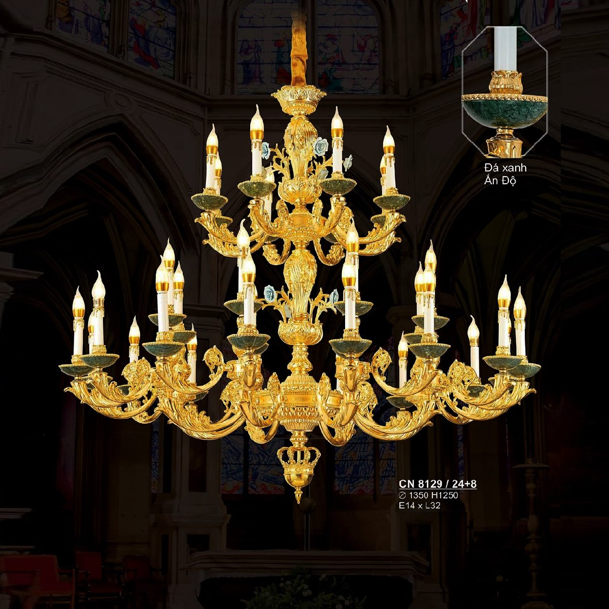 S - CN 8129/24+8: Đèn chùm nến 32 tay - KT: Ø1350mm x H1250mm - Bóng đèn nến E14 x 32 bóng