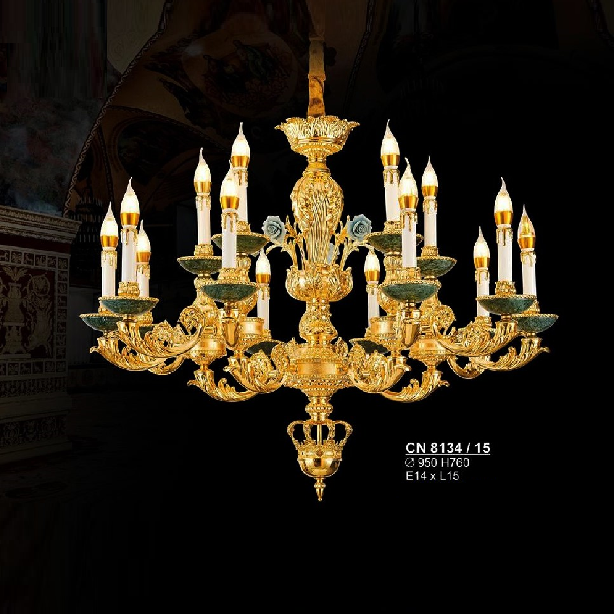 S - CN 8134/15: Đèn chùm nến 15 tay - KT: Ø950mm x H763mm - Bóng đèn nến E14 x 15 bóng