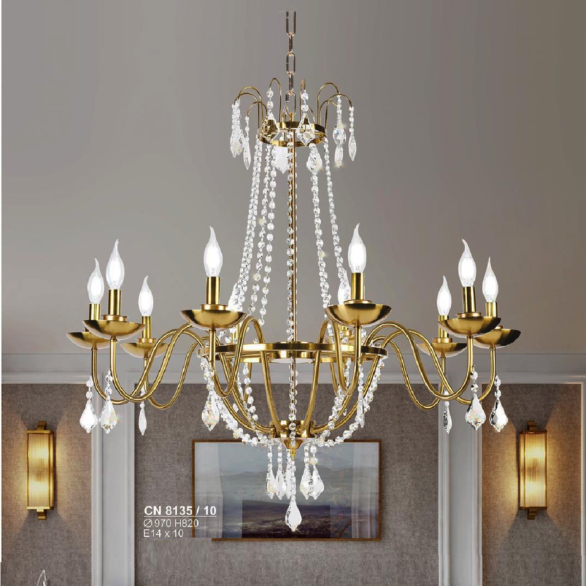 - Sản phẩm: S - CN 8135/10: Đèn chùm nến hạt Phale - KT: Ø970mm x H820mm - Bóng đèn nến E14 x 10 bóng
