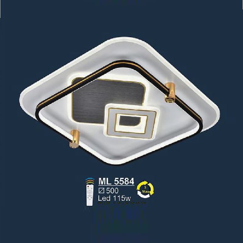 • Sản phẩm: SN - ML 5584: Đèn áp trần LED Mica vuông - KT: L500mm x W500mm- Đèn LED 115W - ánh sáng đổi 3 màu - Remote