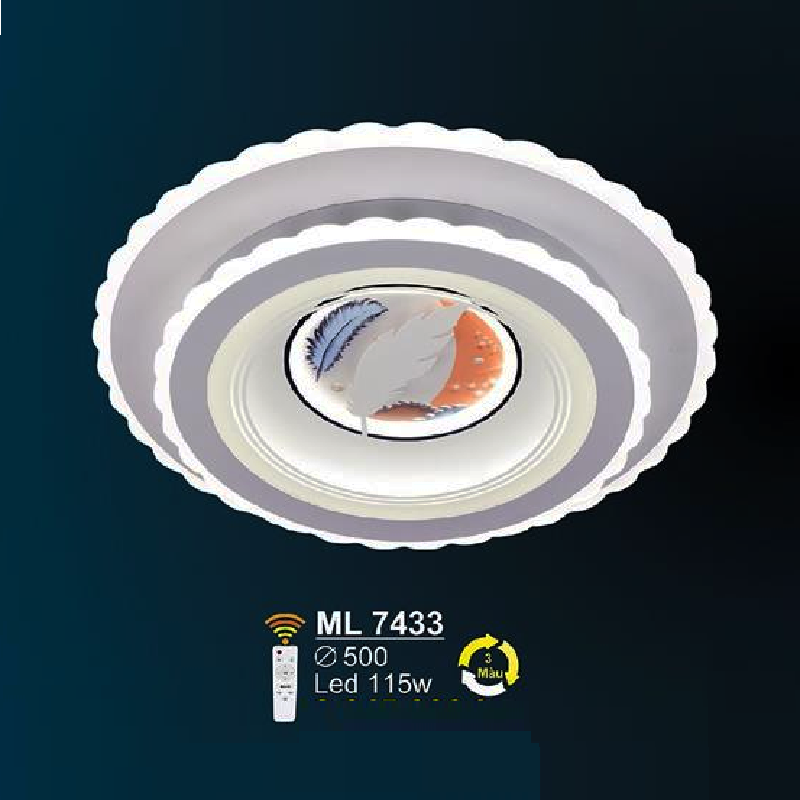 - Sản phẩm: ML 7433: Đèn áp trần LED Mica - KT: Ø500mm - Đèn LED 115W - ánh sáng đổi 3 màu - Remote