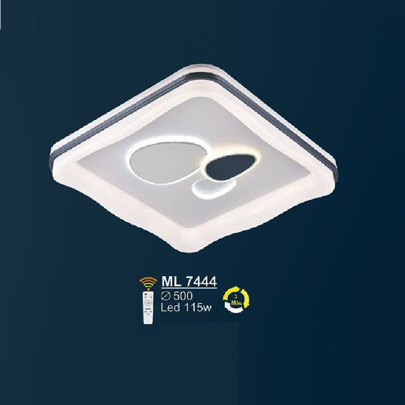 • Sản phẩm: ML 7444: Đèn áp trần LED Mica Vuông - KT: L500mm x W500mm - Đèn LED 115W - Ánh sáng đổi 3 màu - Remote
