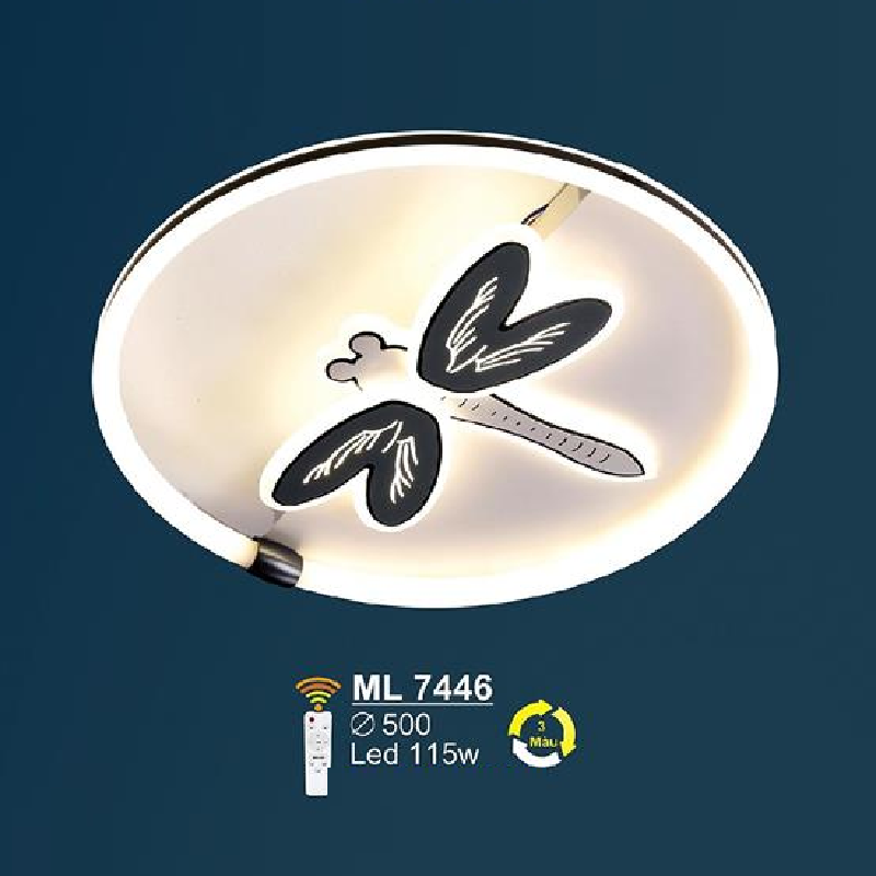 - Sản phẩm: ML 7446: Đèn áp trần LED Mica - KT: Ø500mm - Đèn LED 115W - ánh sáng đổi 3 màu - Remote