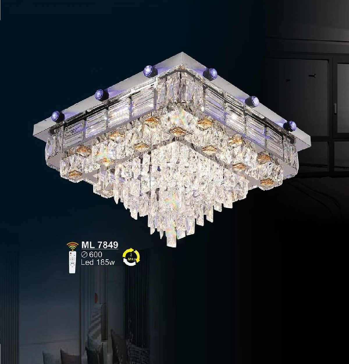 - Sản phẩm: S - ML - 7849: Đèn áp trần vuông LED Thủy tinh phale - KT: L600mm x W600mm - Đèn LED 185W đổi 3 màu - Remote