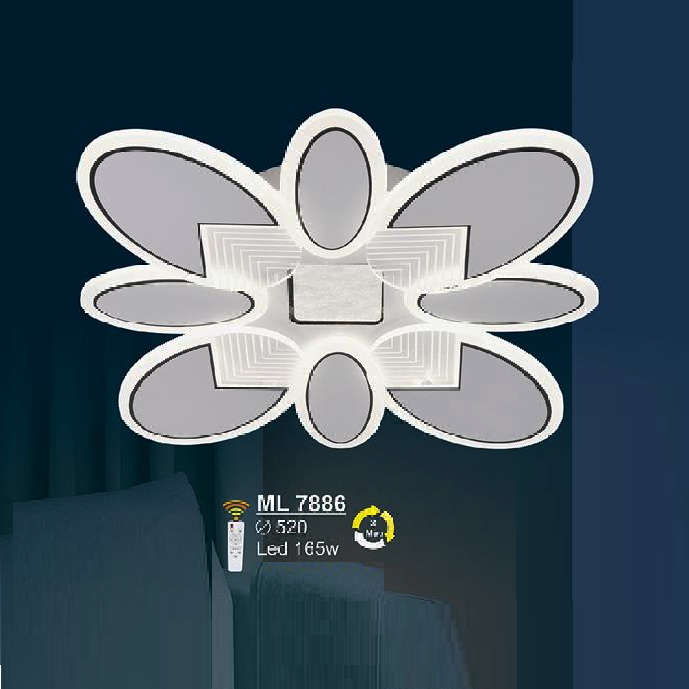 - Sản phẩm: SN - ML 7886: Đèn áp trần LED Mica - KT: Ø5520mm - Đèn LED 165W - ánh sáng đổi 3 màu - Remote