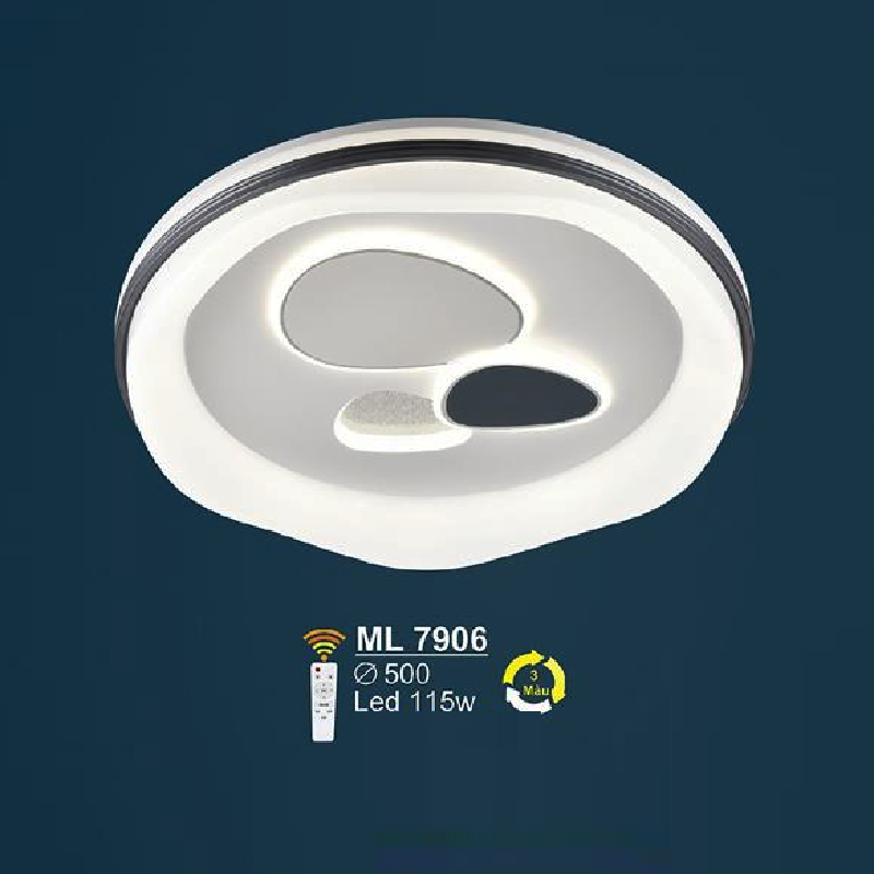 - Sản phẩm: ML 7906: Đèn áp trần LED Mica - KT: Ø500mm - Đèn LED 115W - ánh sáng đổi 3 màu - Remote