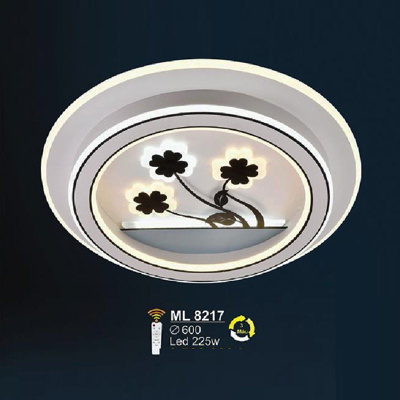 - Sản phẩm: SN - ML 8217: Đèn ốp trần LED Mica - KT: Ø600mm - Đèn LED 225W - Ánh sáng đổi 3 màu - Remote
