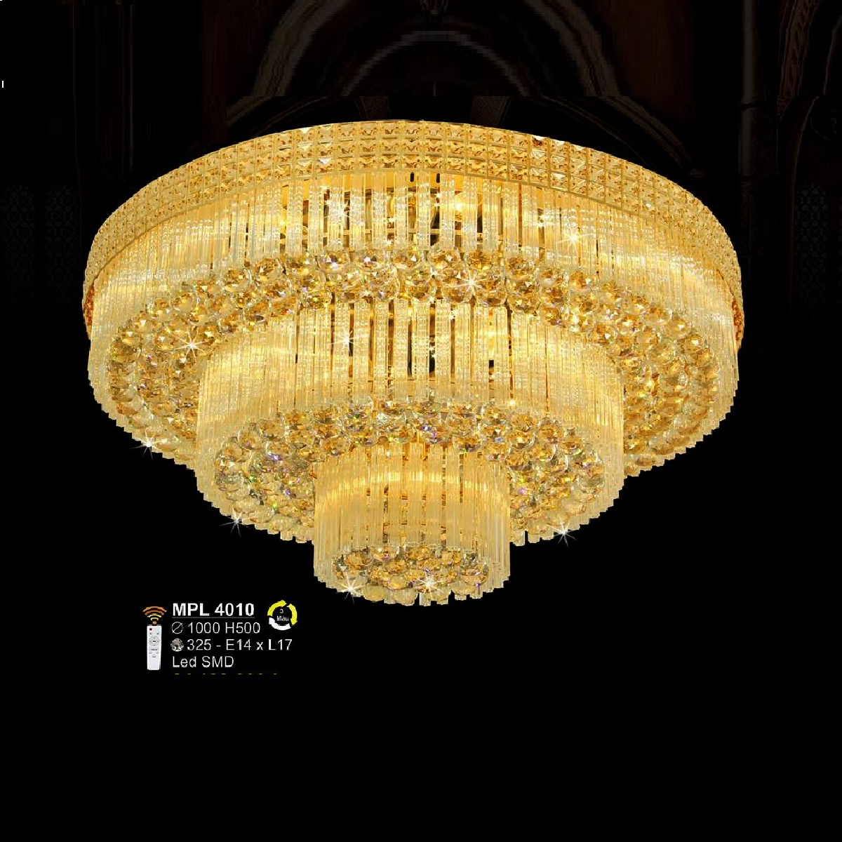 S - MPL 4010: Đèn áp trần Phale - KT: Ø1000mm x H500mm - 325 hạt phale - Đèn LED + Đèn chân E14 x 17 bóng - Remote