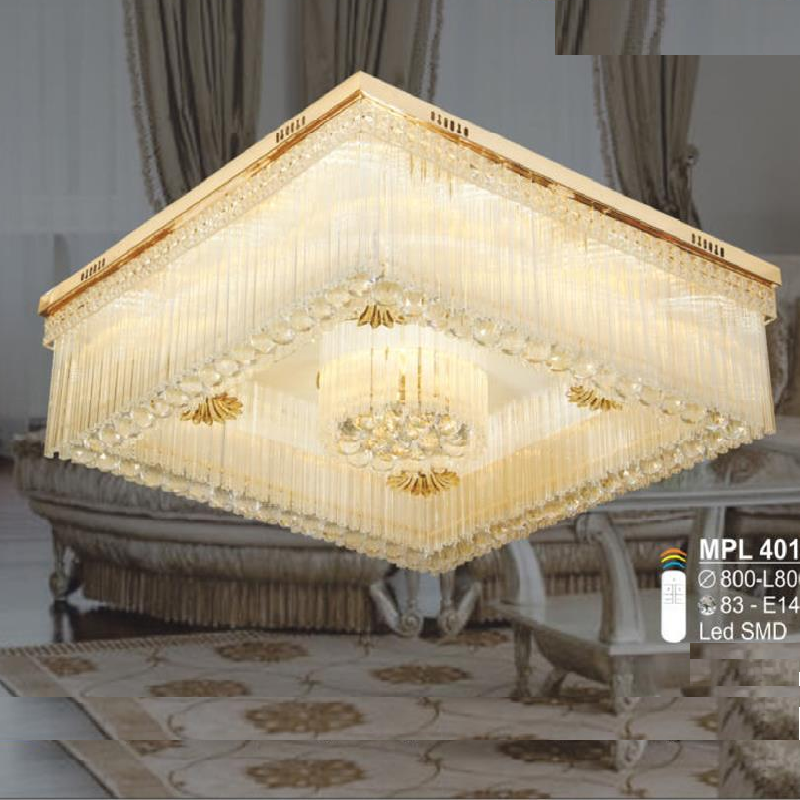 SN - MPL 4019: Đèn áp trần vuông Phale - KT: L800mm x W800mm x H270mm - Đèn LED đổi 3 màu + E14 x 8 - Remote