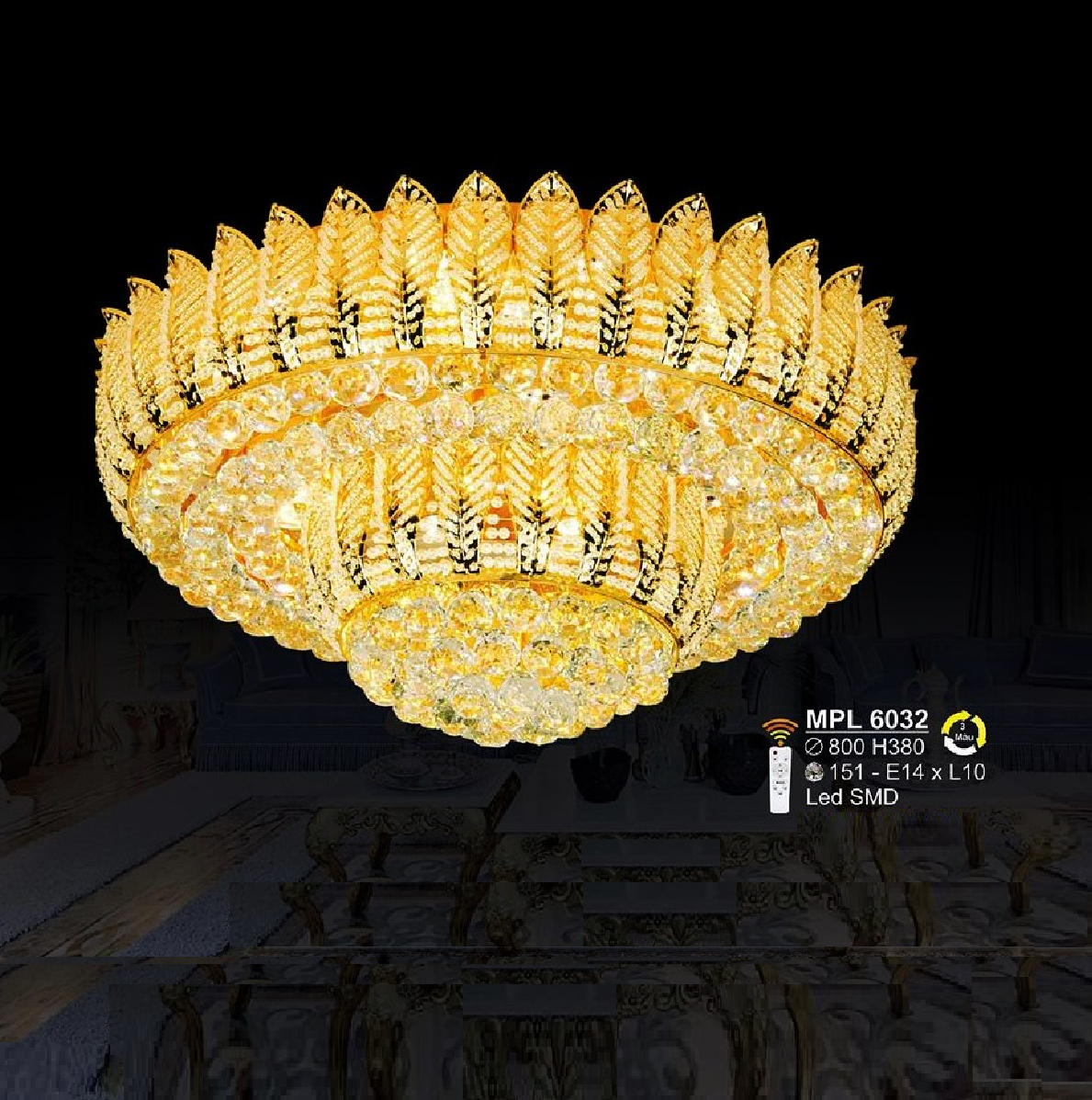 5. S - MPL 6032: Đèn áp trần Phale - KT: Ø800mm x H380mm - 151 hạt phale - Đèn LED + Đèn chân E14 x 10 bóng - Remote
