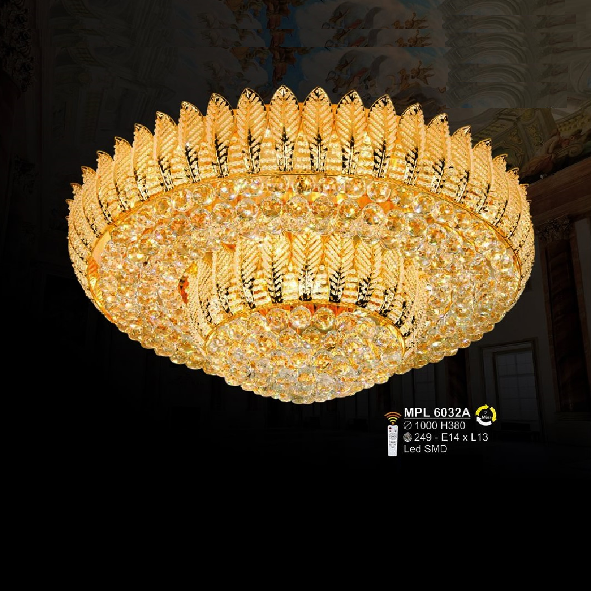 - Sản phẩm: S - MPL 6032A: Đèn áp trần Phale - KT: Ø1000mm x H380mm - 249 hạt phale - Đèn LED + Đèn chân E14 x 13 bóng - Remote