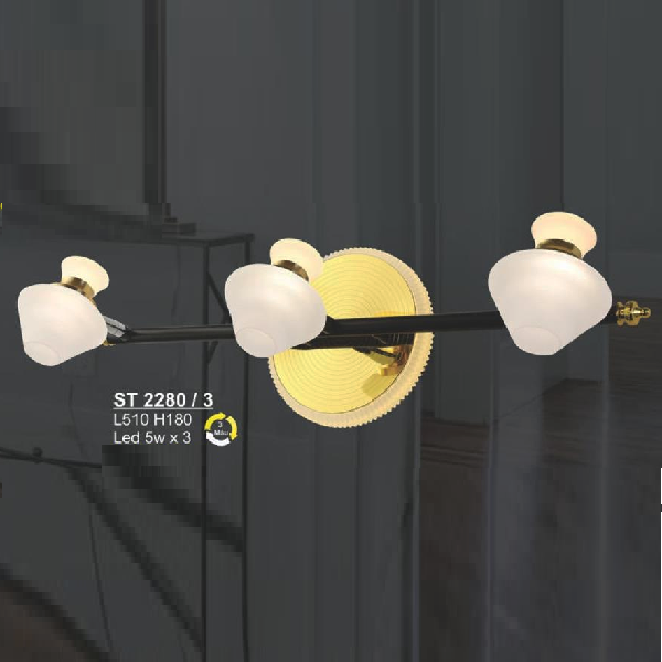- Sản phẩm: SN - ST 2280/3: Đèn rọi tranh/gương 3 bóng - KT: L510mm x H180mm - Đèn LED 5W x 3 đổi 3 màu