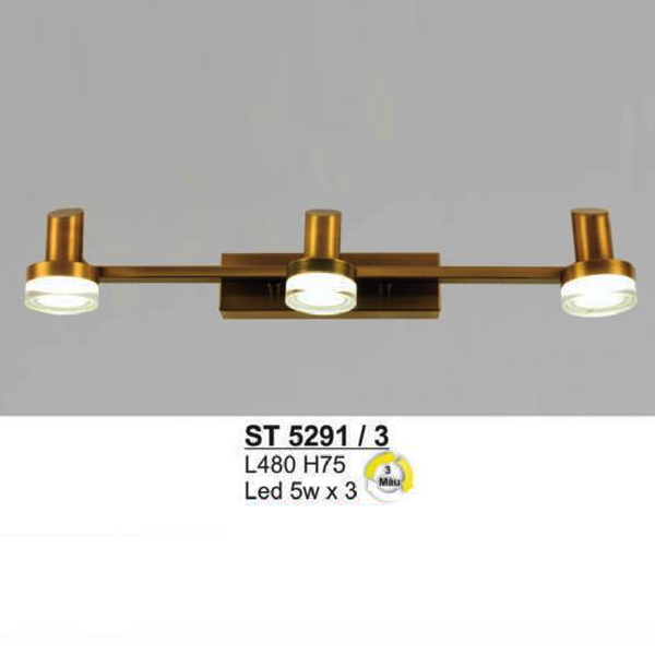 - Sản phẩm: SN - ST 5291/3: Đèn rọi tranh/gương 3 bóng - KT: L480mm x H75mm - Đèn LED 5W x 3 đổi 3 màu
