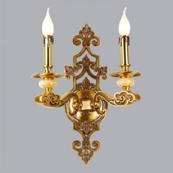 E - VD - 927: Đèn gắn tường đồng đôi - KT: L220mm x H400mm - Bóng đèn nến E14 x 2 bóng