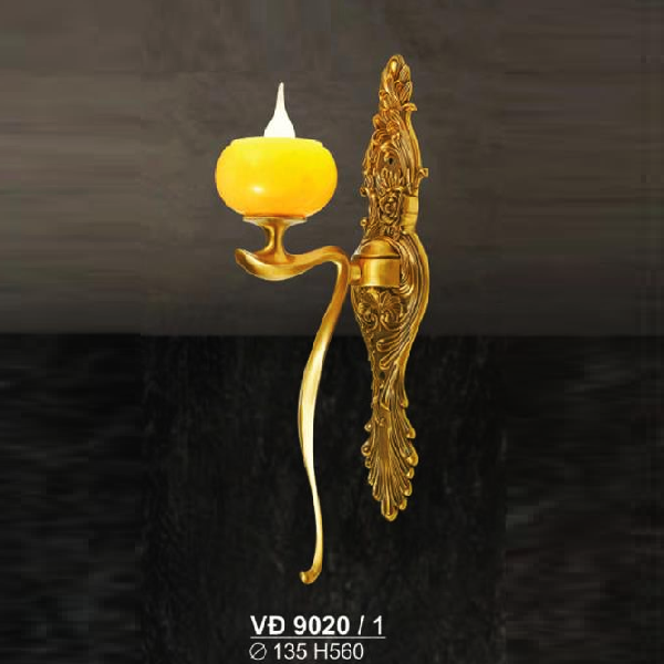 - Sản phẩm: SN - VĐ 9020/1: Đèn vách đồng chao đá - KT: Ø135mm x H580mm - Đèn chân E14 x 1 bóng