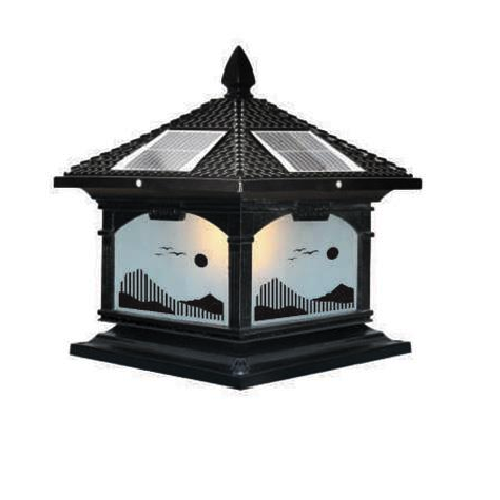 - Sản phẩm: SOLAR - 456E: Đèn gắn đầu trụ NLMT - KT: Mái: 400mm - Đế: 380mm x H420mm - Đèn LED 7W đổi 3 màu + Đèn E27 x 1