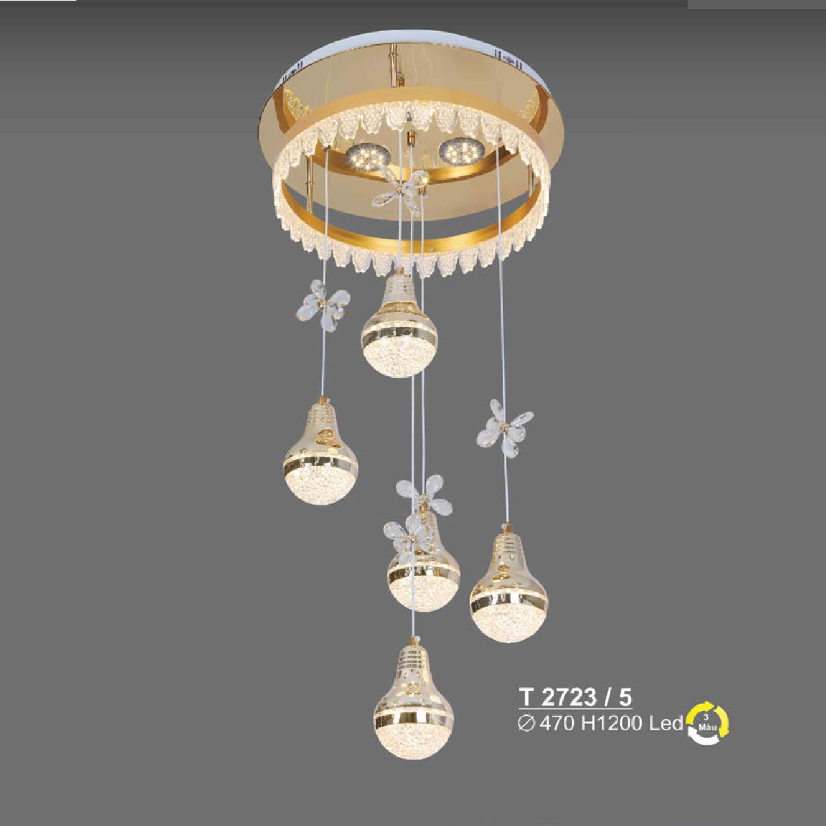 5. T 2723/5: Đèn thả LED 5 bóng - KT: Ø470mm x H1200mm - Đèn LED đổi 3 màu