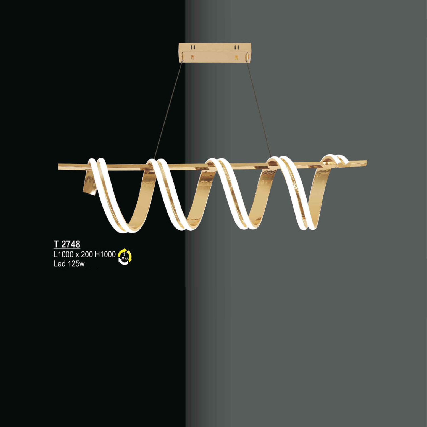 T 2748: Đèn thả LED ngang - KT: L1000mm x W200mm x H1000mm - Đèn LED 125W đổi 3 màu