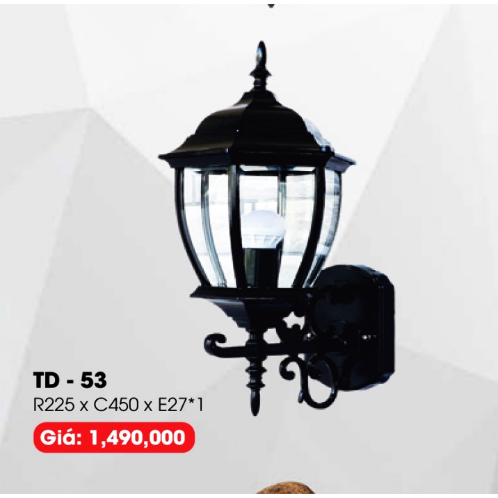 - Sản phẩm: TD - 53: Đèn gắn tường ngoài trời NLMT - KT: W225mm x H450mm - Đèn LED + E27 x 1 bóng