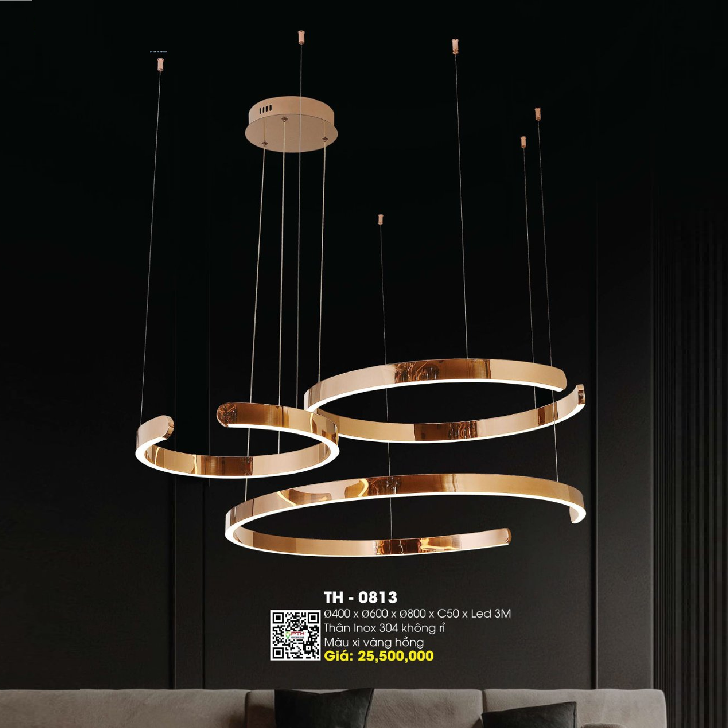 - Sản phẩm: TH - 0813: Đèn thả 3 vòng LED - KT: Ø(400+600+800)mm - x H50mm - Đèn LED đổi 3 màu