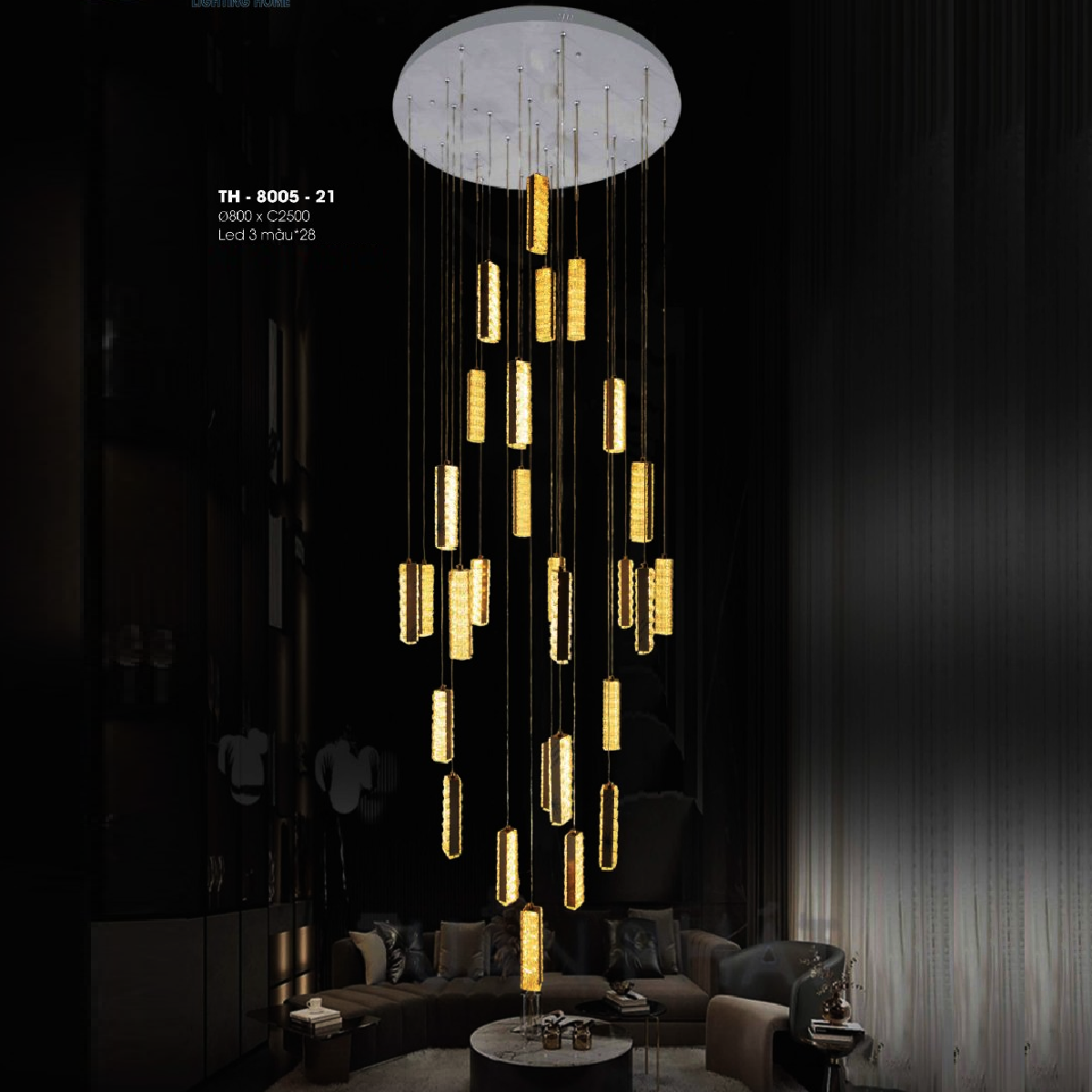 5. TH - 8005-21: Đèn thả thanh LED - KT: Ø800mm x H2500mm - Đèn LED đổi 3 màu