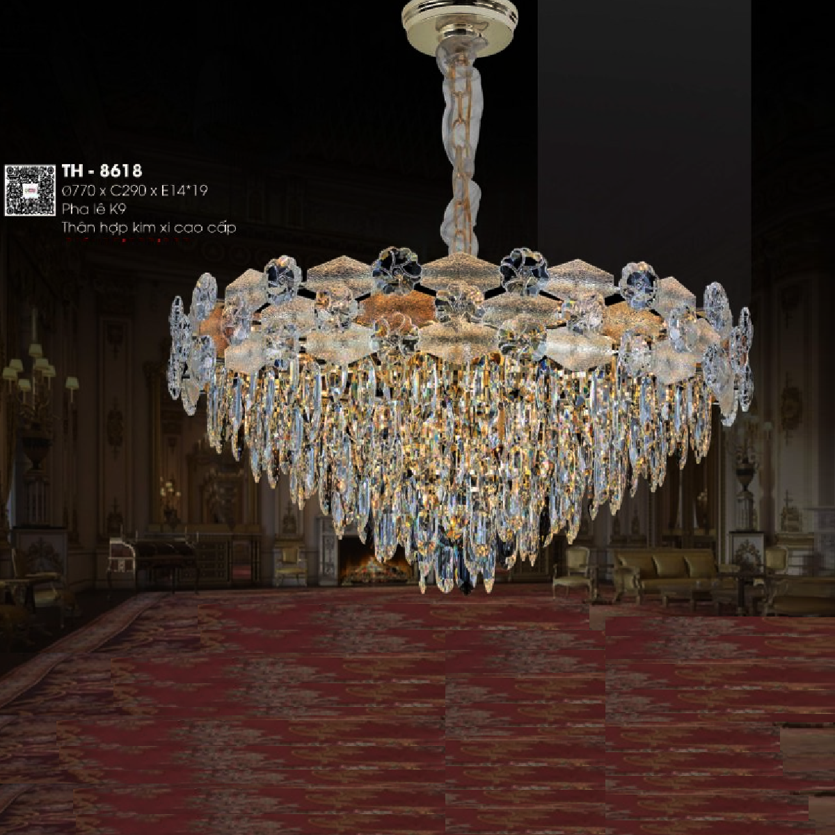 - Sản phẩm: TH - 8618: Đèn thả Phale - KT: Ø770mm x H290mm - Bóng đèn E14 x 19