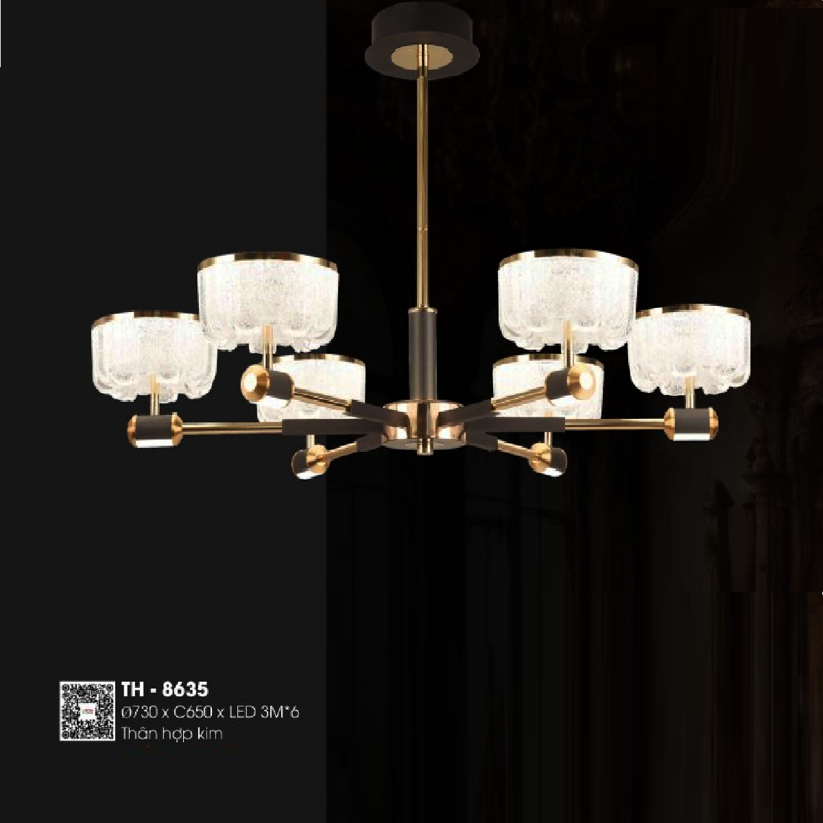 - Sản phẩm: TH - 8635: Đèn chùm thả LED 6 tay - KT: Ø730mm x H650mm - Đèn LED 3M x 6